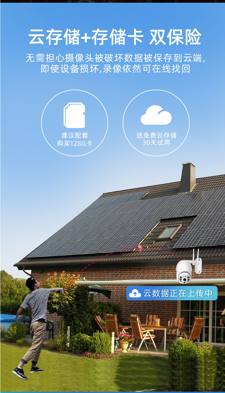 | 商品名称 | 尚青4 g監視カメラ室外防水監視カメラに携帯電話の流量カードを挿入します。wifi雲台回転無線監視カメラを使わないでください。携帯電話の長距離高精彩夜間テレビ500 Wスマートボールマシン+モバイル追跡+電源オフ+128 G |