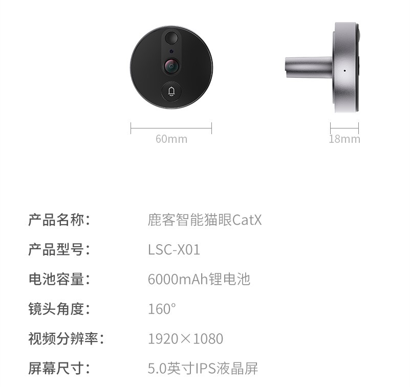 【鹿客(LOOCK)CAT X】鹿客インテリジェント猫眼Cat X 防犯カメラ电子猫眼 家用可视门铃インテリジェント警報视频通话HD夜視 黒【行情 报价 价格 评测】-